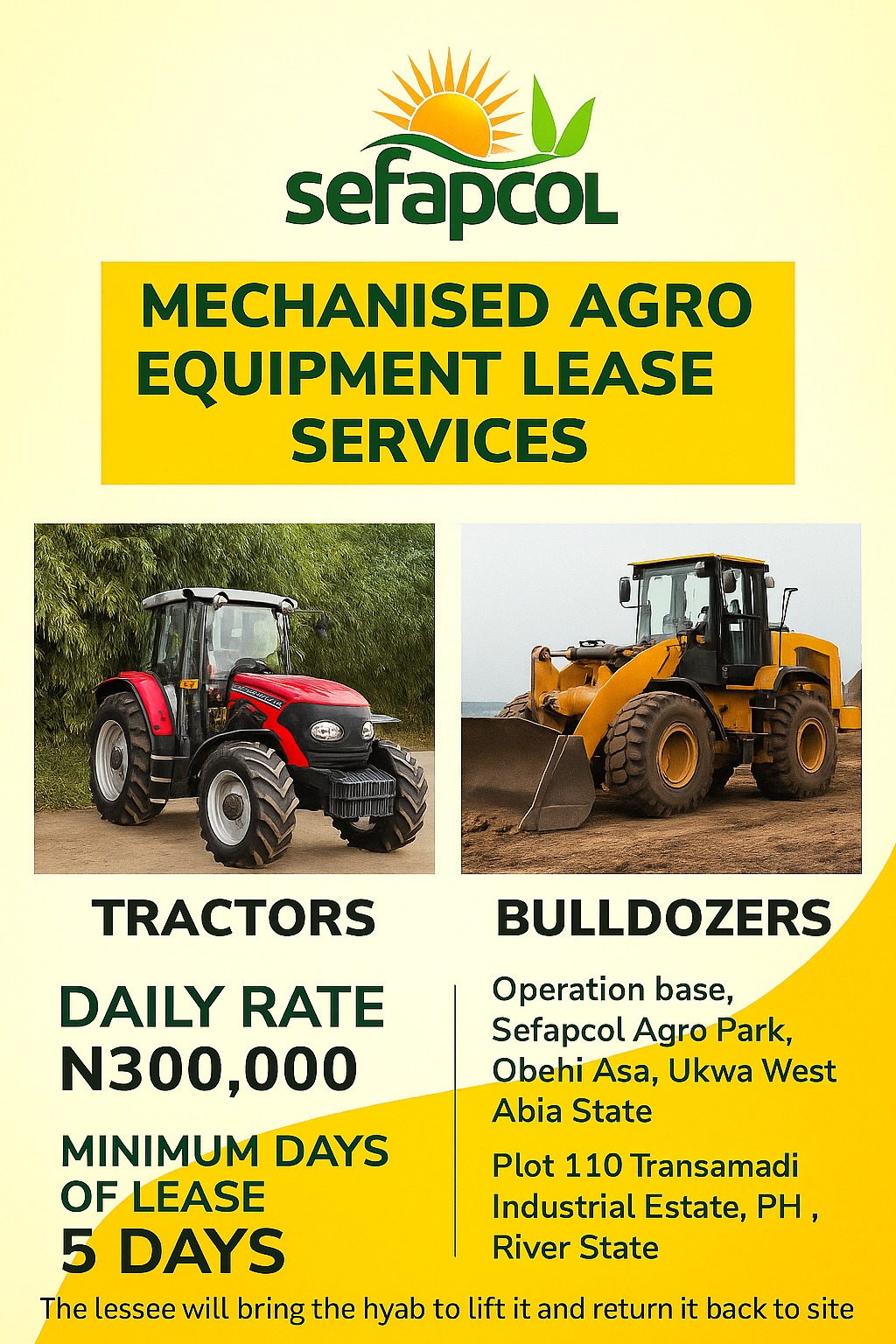 South East Farms and Agricultural Processing Company Limited (SEFAPCOL) is an agro-allied company where individuals or companies invest in farms for annual returns. We are floating over 15 agro-businesses/value chains, including automated processing small unit factories. SEFAPCOL provides all the needed infrastructure and training to farmers to farm on the land.